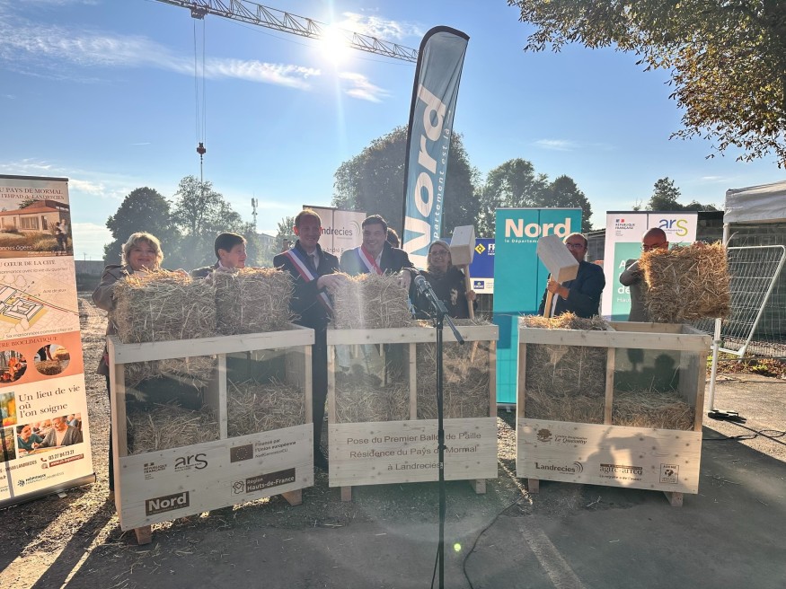 Landrecies : le premier ballot de paille du futur EHPAD a été posée.