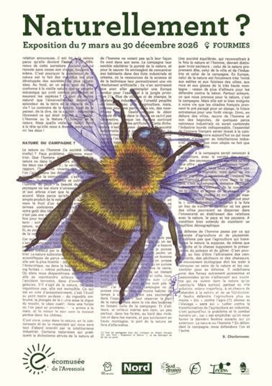 L’Écomusée de l’Avesnois inaugure sa nouvelle exposition « Naturellement ? » vendredi 6 mars à Fourmies, une invitation à repenser notre rapport au vivant et aux paysages. Le week-end sera rythmé par des animations : samedi, ateliers participatifs autour des fibres, du bois et d’un hôtel à insectes, suivis le soir d’un spectacle engagé sur l’agriculture, « Nourrir l’Humanité – Acte 2 ». Dimanche, une conférence sur l’agriculture de territoire se tiendra à Avesnes/Helpe. Un lancement gratuit et ouvert à tous, pour sensibiliser et échanger sur nos manières d’habiter le monde.