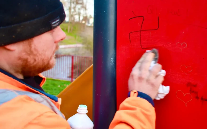 Des croix gammées ont été découvertes ce week-end sur la plaine de jeux du parc des Gradins. Elles ont été rapidement effacées par les services municipaux. Sur le même site, des préservatifs jetés au sol ont également été retrouvés et ramassés. La ville rappelle que les tags et dépôts de déchets font l’objet d’une surveillance régulière et d’interventions systématiques. (Photo : blog du maire Jean-Jacques Thomas)