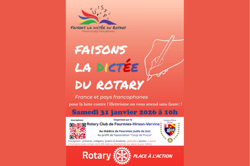 Avec notamment un engagement fort contre les fakes news et pour le développement de l’esprit critique. Plusieurs rendez-vous sont proposés : un concours d’expression orale pour les lycéens le 19 janvier à Fourmies, la dictée internationale du Rotary le 31 janvier au théâtre de Fourmies au profit de la lutte contre l’illettrisme, et une exposition « Tous contre les fakes news » au printemps à la médiathèque. Des actions pour mieux comprendre le monde et préparer l’avenir.
