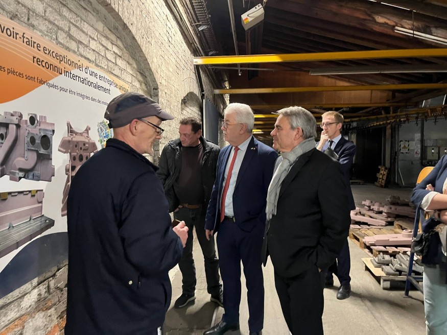 Le Président des Hauts-de-France s’est rendu mercredi après-midi à Saint-Michel, avec Jean-Jacques Thomas, aux côtés des salariés des Fonderies de Sougland, l’une des plus anciennes fonderies de France qui a vu le jour en 1543. Malgré le redressement judiciaire du groupe ACI, Xavier Bertrand souhaite "tout mettre en œuvre, en lien avec l’Etat, afin de trouver un repreneur à cette pépite industrielle pour maintenir l’emploi et investir dans ce savoir-faire industriel". (Photo : page Facebook Xavier Bertrand)